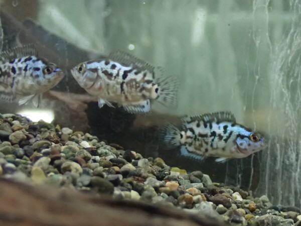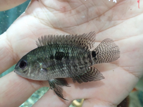 ドイツブリードのハイブリッドアイスポットシクリッド。ハイブリッドは賛否ありますが、狙って作られたハイブリッドは個人的には好きです。キレイでかっこよくなるなら気になるじゃないですか??今回のアイスポット、同サイズのメラニアエに比べるとスポットは少ないですが、体色はかなり金色が強く、このサイズで既にキンキンです!これどんな感じに成長するかかなり気になります!中段左の画像です。