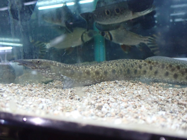 ドイツ便で入荷した唇に模様が入り腹部がオレンジになるのが特徴のレアパイク。唇の模様はこのサイズでもすでにはっきりと出ていますが腹部の発色はこれから成長につれてですね。ウルグアイ川流域が原産で最大で25~26cm程の中型種だそうです。当店初入荷の希少種です!次回の入荷は未定です!気になる方はお早めに!右上の画像です。
