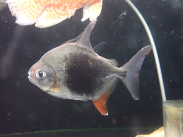 東南アジアブリードの改良品種。顔付きや体型からベースは中バンドのションベルギーだと思います。親個体の質が良いのか体型の崩れた個体は滅多にいないし、背ビレや臀ビレが長く伸びてシルエットのキレイな個体が多いのでブリードですがカッコいいパクーです。でももう何年も前から流通してるブリード個体の割には意外と値段が下がらないんですよね・・・。10年位前だったでしょうか、初輸入の時は南米便で輸入されたワイルド個体という触れ込みで入荷したのですが実はブリードされた改良品種だったらしいとなりちょっとマニアをがっかりさせたパクーでもありましたね・・・。中段左の画像です。
