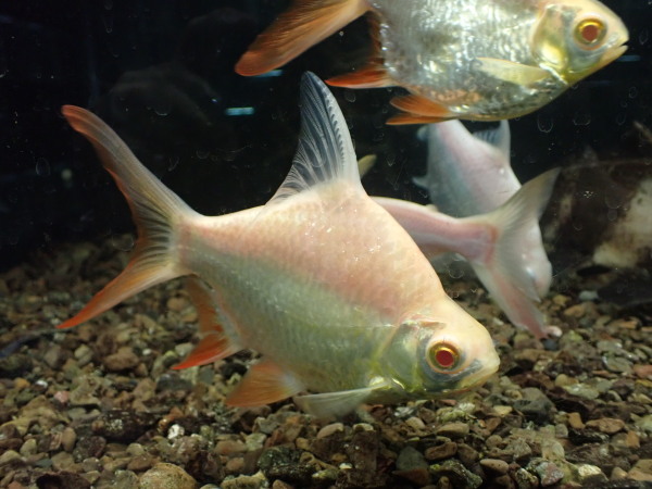 ノーマルも1匹だけ大きめ入荷しました。尾ビレの上下にブラックバーが入るチンホイルじゃなくて体色がやや金色がかった普通のレッドフィンバルブの方です。最近はこっちの種類あまり来ないのでちょっと珍しいです。