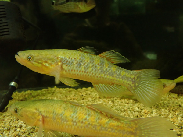 先日これに近縁なゴシキタメトモが入荷しましたが今日はスネークヘッドガジョンが入荷!よく似た魚ですが見比べれば全然違いますね。スネークヘッドガジョンの方が細身で顔つきも精悍な印象です。あと体色はスネークヘッドガジョンの方がよりメタリックな感じだし、今回入荷したスネークヘッドガジョンにはタメトモやゴシキタメトモに見られる臀ビレ付け根付近の明色横帯が無いなど体側やヒレの模様も違います。ただしスネークヘッドガジョンとして流通する魚は1種類ではない可能性もありますし、同種間においても発色などかなり個体差が激しったりもしますので判別が難しい個体も少なくないと思います。まぁでもタメトモやスネークヘッドガジョンの仲間はどれもみんな良い魚なので全部オススメなんですけどね!左下の画像です。