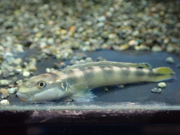 ボウズハゼみたいな顔したアフリカ産ハゼ型シクリッドです。ボウズハゼに似てるんでもちろん顔はちっともかっこよくありません。でもそんなちょっとキモいところがこの魚の魅力です!入荷は少なくてても珍しい魚です。マニアの方いかがですか??中段右の画像です。